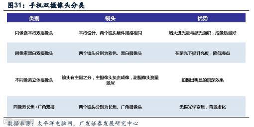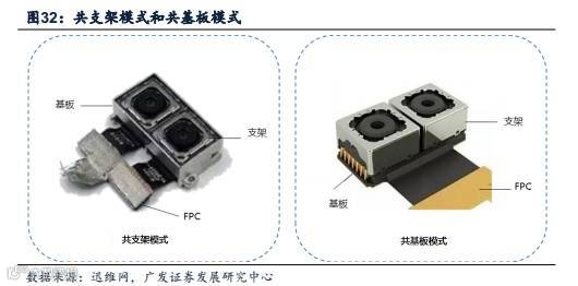 从单摄到双摄的演变造成摄像头模组封装难度大幅提升,更高的工艺要求意味着更高的成本及收入,舜宇光学技术储备丰厚,在双摄上达到自研AA设备的水平,摄像头模组业务有望受益。双摄模组不仅包括单摄像头模组封装,还包括两颗摄像头的组合,目前双摄像头主要采用两种模式:共支架模式和共基板模式。