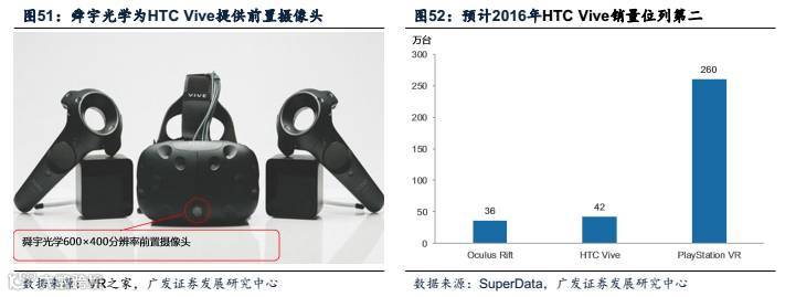 舜宇光学为HTC Vive前置摄像头的供应商,是舜宇光学对于VR供应链的积极试水,提前参与到VR产业链,有助于公司在与VR前沿公司建立良好客户关系方面建立先发优势,一旦VR时代来临,公司有望展现超预期爆发力。