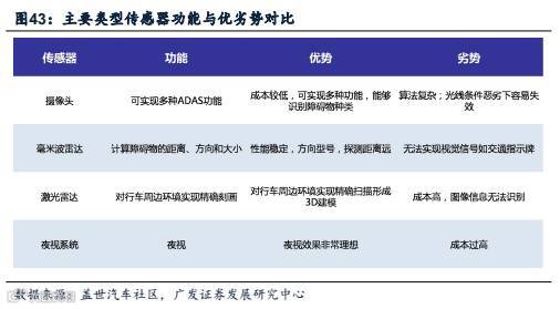 随着算法的不断优化,车载摄像头市场将更具爆发性。目前雷达系传感器仍然是ADAS主流解决方案,这主要来自于雷达在硬件性能以及成本上相对的优势,但雷达系产品一个很难解决的缺陷就是无法实现对图像信息的识别。视觉系摄像头传感器应用范围广,可识别图像信息,但算法复杂。Mobileye公司通过海量数据积累与算法优化让视觉系ADAS解决方案实现了高效的FCW、LKA、PCW等ADAS功能,获得了市场青睐,同时成本的下降将促进了视觉系ADAS解决方案的渗透。