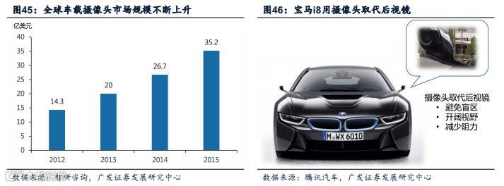 目前,高端汽车的各种辅助设备配备的摄像头可以多达8个,用于辅助驾驶员泊车或触发紧急刹车。以特斯拉新车型为例,其硬件系统中Autopilot 2.0中包括8个摄像头,为特斯拉提供360度的视角,最大识别距离达到250米,包括3个前置摄像头、2个侧边摄像头和3个后置摄像头。三星电子手机摄像头供应商和韩国最大的车载摄像头制造商Mcnex公司预测,当摄像头成功取代侧视镜时,汽车上的摄像头数量将达到12个。市场研究公司IHS Automotive预测,2020年车载摄像头销量将达到8300万,数量将较2012年增加5倍。