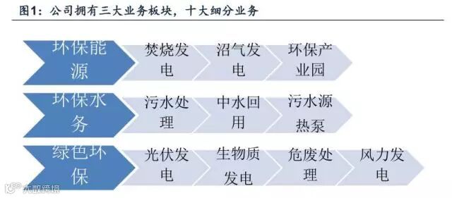 目前公司三大主营业务中,环保能源包括生活垃圾发电、沼气发电和环保产业园,环保水务包括污水处理、中水回用和污水源热泵,绿色环保包括生物质发电、太阳能光伏发电、危废综合处理、风力发电等新兴领域。