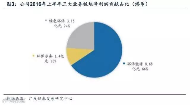 从2016年中报可以看出,环保能源板块收入贡献在营业总收入构成绝大多数,是公司的业务支柱,同时,环保水务和绿色环保板块的收入贡献正在不断加强,未来在收入贡献的占比会继续增长。