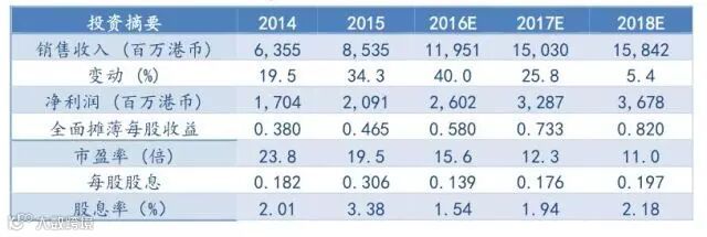 我们预计公司2016-2018年EPS为港币0.580元、0.733元及0.820元,投资评级为“买入”。