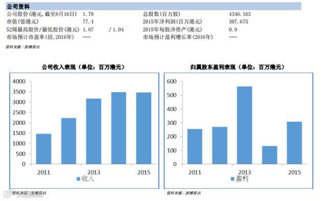 2016 年上半年收入约 14.09 亿港元,同比减少 17.9%,纯利约 1.24 亿港元,同比减少 40.6%。去年盈利下跌的主要原因是消费市场疲软, 并且人民币贬值也是影响盈利的因素之一。
