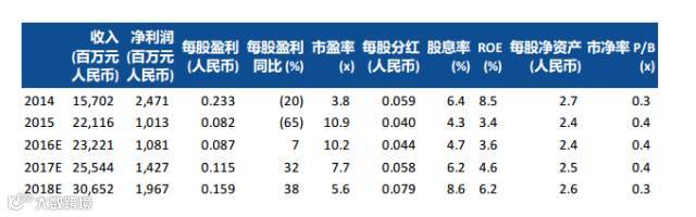 越秀地产(123 HK,买入):公司是广州市政府旗下主要住宅开发商,在广州拥有370万平方米的优质土地储备。目前股价相对2016年NBV有60%的折让。公司已经通过新的股权激励计划。管理层计划于2017年底前恢复公司盈利增长,并通过更多资产交易实现股票价值重估。我们预期公司盈利于2016、2017年分别增长7%、32%,目标价为1.7港元,相当于0.6倍的2016年预测NBV。