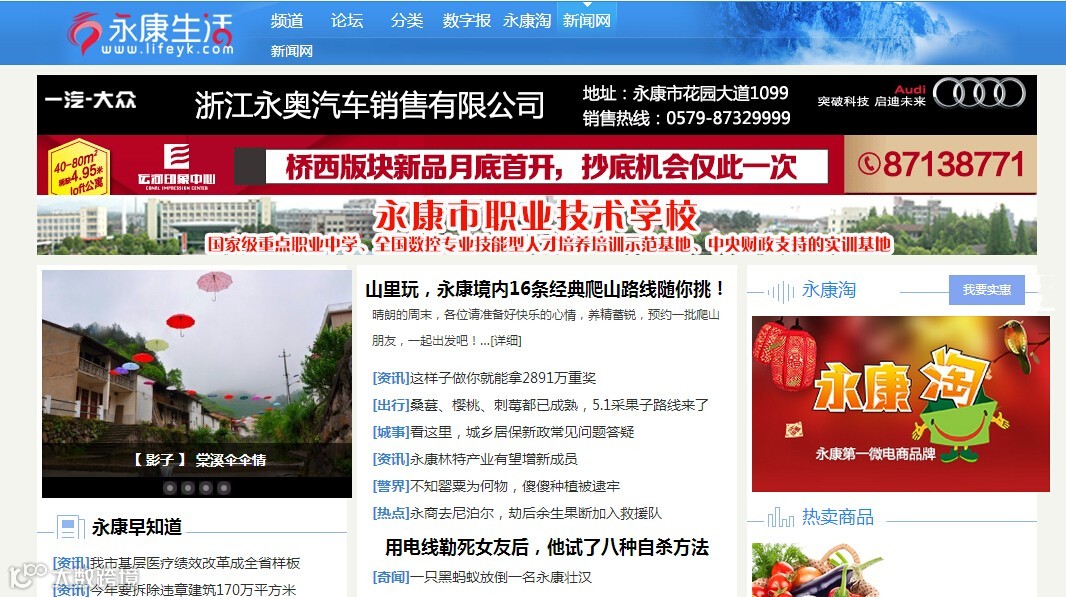 永康日报新媒体平台建设相对滞后,为此,该报2014年的一项主要工作就是切实抓好以永康生活网为核心的综合门户网站的建设。去年3月7日,永康生活网正式上线,8月份PC端和微信端全面打通,12月份“永康淘”电商购物平台开通,在9个月的建设过程中,我们始终把生活网作为打通新老媒体接口、促进全媒体融合转型的试验田来抓,资源配置全力倾斜、人员力量全面整合、内容资源全面共享、活动推广全面融合。目前永康生活网注册用户已达15.5万,微信粉丝3.15万,无论是本土用户数还是新闻传播力、服务影响力上都已逐步成为永康本土最有影响力的网络门户。