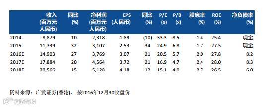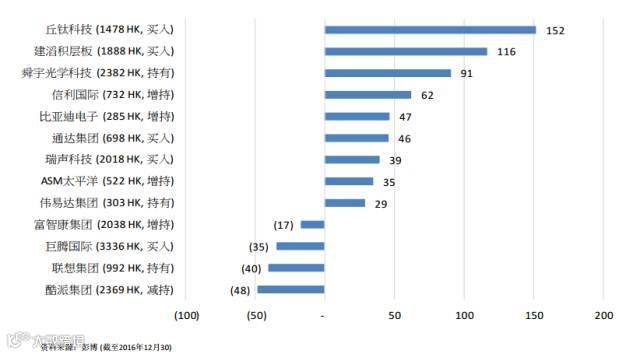 丘钛科技(1478 HK,买入):成长股份。CMOS摄像头模组制造商。考虑到来自新产品(指纹模组)的贡献,加上核心CMOS摄像头模组业务的产品结构改善,2017年公司盈利将继续维持高速增长(EPS 增速 40%+)
