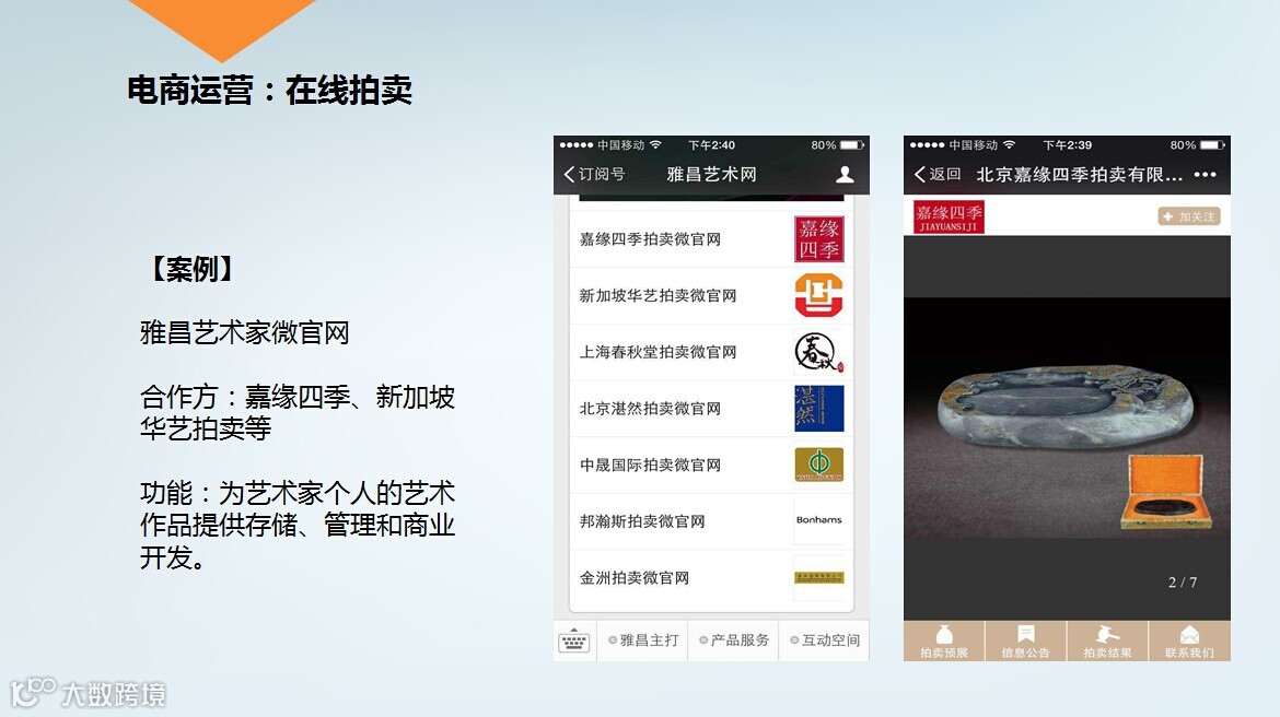 依托雅昌艺术网的强大资源,雅昌艺术家微官网也在建设中,已与嘉缘四季、新加坡华艺拍卖等在线拍卖网站达成合作,以雅昌艺术为入口,跳转至在线拍卖网站。但艺术家们需要为进入这套系统而付出一定费用。
