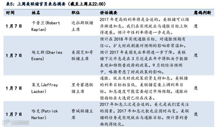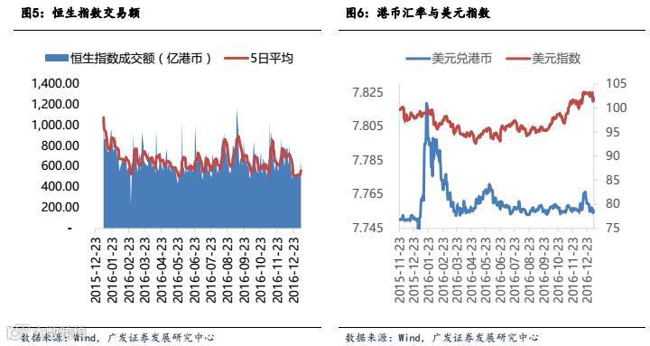 上周美联储12月议息会议的纪要公布,多位官员认可财政政策的扩张将刺激经济增长,同时表示应根据特朗普新政府的刺激规模和结构等细节来调整货币政策。一方面FOMC对特朗普新政府的整体判断是“不确定”,从而使得FOMC的鹰派立场减弱,另一方面,由于联储的货币政策参考指标新加入了“特朗普新政府”这一指标,全球资产价格变动冲击的源头从美联储转向了特朗普。整体来看,金融市场都在等待和猜测特朗普新政府的作为。因此对港股市场的走势判断应该从特朗普系列政策的落实时点开始。值得关注的下一个时点是1月20日特朗普新政府正式开始执政,届时可能会公布部分新政策。在这之前,由于缺乏更多的信息,资金的短期博弈可能会使港股市场呈现双边波动状态。因此近期美元指数和美债收益率回调等现象仍应视为波动而非反转。