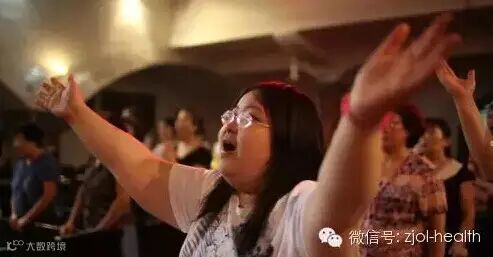 (多发性硬化患者刘杨,在一个基督教青年聚会唱诗活动中张开双臂。图/吴宏)