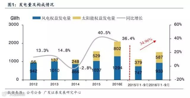2016年发电状况良好,截至第三季度,发电总量达15.2亿度(+35%),占全年发电量总预期的72.5%,三季度发电4.23亿度(+27%),随着四季度风况转好和政策推进,预计全发电量在21亿度左右,同比增长约36%。