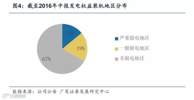 公司在严重限电区域的发电量占比约14%,且集中于甘肃,同行龙源表示甘肃限电率在今年出现明显好转;公司在一般限电地区发电量占比22%,仅分布于内蒙古和辽宁,其余67%发电都在非限电区域。
