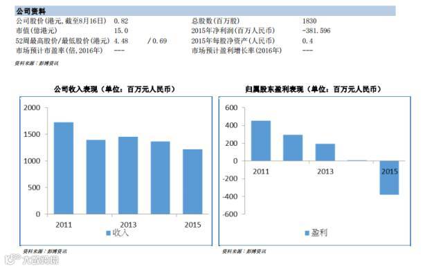 根据彭博资讯统计口径, 截至 2016 年 6 月末,公司净负债 27.14 亿元人民币,负债比率(净债务/总权益) 302.3%。股本回报率-43.3%。
