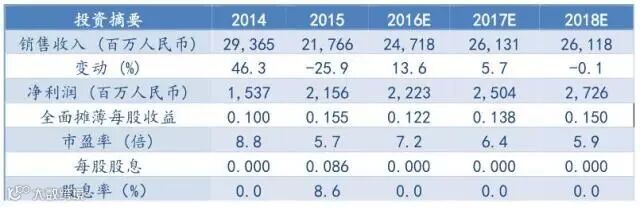 我们预计公司 2016-2018 年 EPS 为人民币 0.122 元、0.138 元及 0.150,维持“持有”评级。