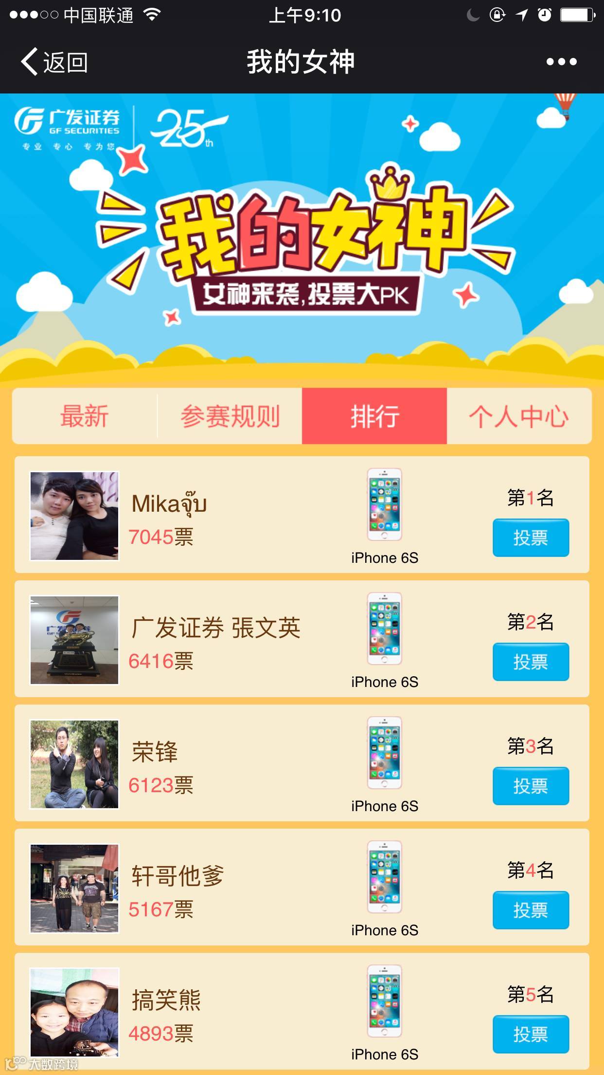女神奖:获得投票数量最多的前10名用户将分别获得iphone6S手机1台(赠送手机为含两年套餐的电信合约机,获奖用户需配合运营商完成实名制认证后方可领取);