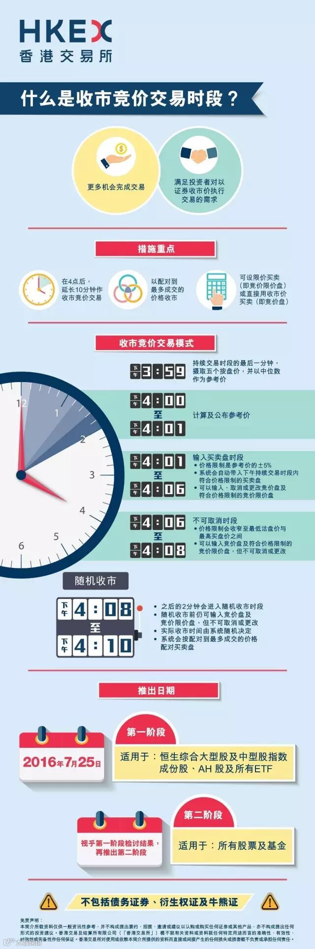 香港交易所将于2016年7月25日(星期一)推出收市竞价交易时段。从下周一起,香港交易所旗下市场部分收市时间将会延长。