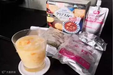 这杯看起来像蛋汤一样的食物,其实是一份含有鸡肉、鸡蛋、胡萝卜的泡饭,味道比我想象的好很多。除了泡饭,代餐包中还有很多其他不容易残留在体内的食物。