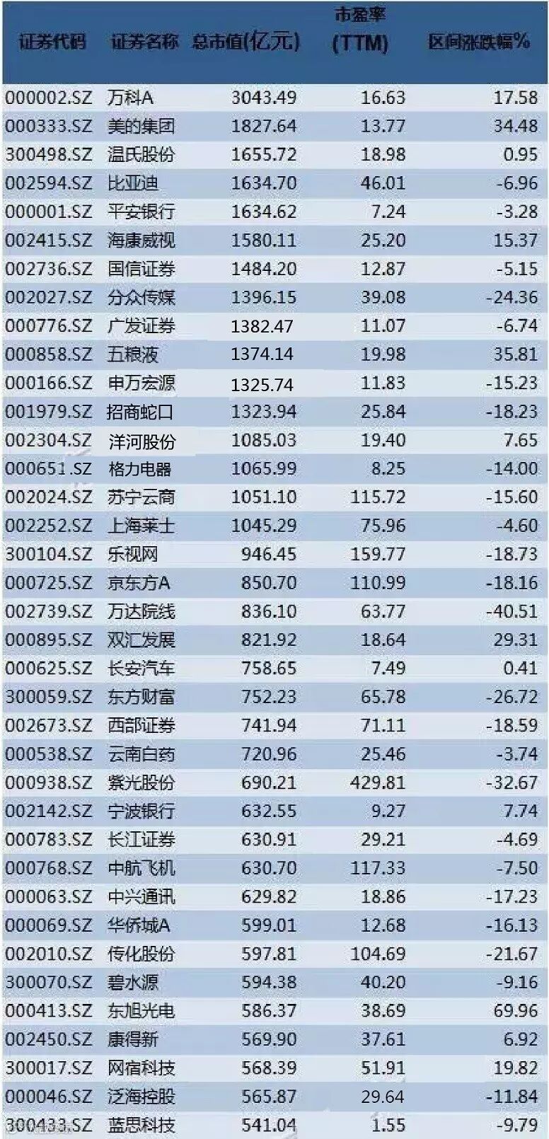 二、市值60亿以上深证成指及中小创新成分股