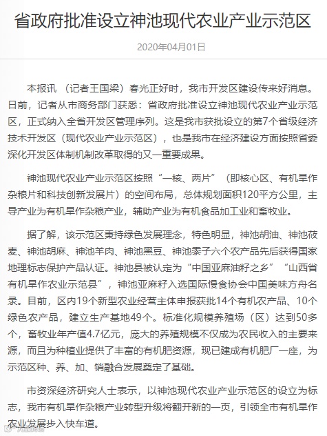 【市政要闻】山西省政府批准设立神池现代农业产业示范区