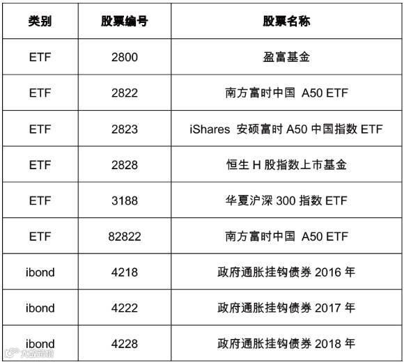 计划涵盖之指定股票为较稳健及流动性较高的交易所买卖基金(ETF)、