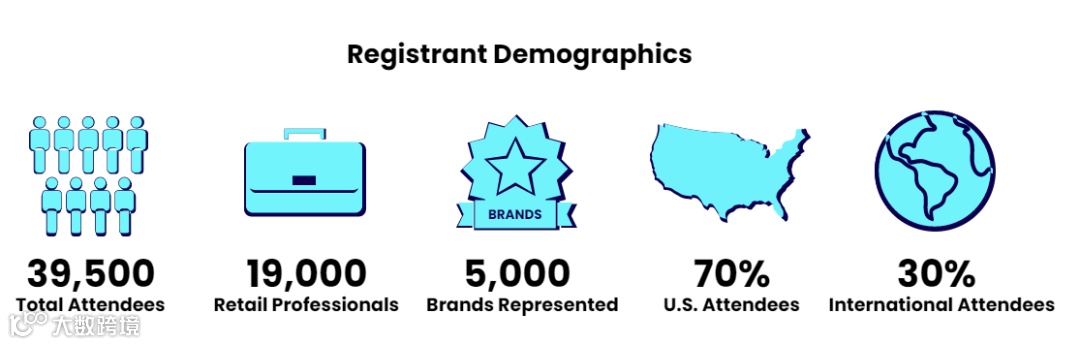 吸引近40000名与会者聚集在纽约市,召集了来自100多个国家的5000个品牌,超过190多场专业会议,在这里各种各样的零售商聚集在一起,分享过去一年零售业的经验教训并了解2024年及以后的商店和在线销售情况。作为行业专业人士的中心枢,置身于此来体验到最新的创新,激发灵感,建立重要联系。