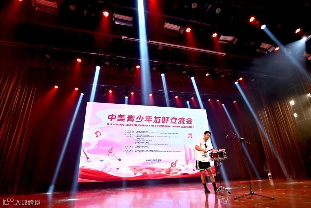 在访问北京、河北、福建、浙江后,7月10日,美国7个州14所学校183名师生组成的美国青少年“青春同行”交流团来到上海。7月12日晚上,伴随着无人机在舞台上拼出SH的字母,中美青少年友好交流会在华东师范大学第二附属中学闵行紫竹分校音乐厅拉开帷幕。