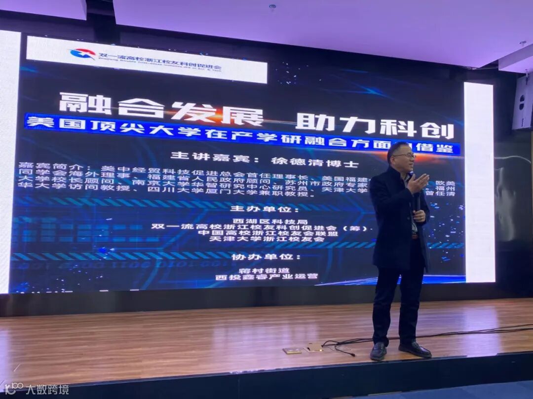 大学浙江校友会、西华师范大学浙江校友会、浙江大学绿色建造研究院&杭州城投未来实验室、杭州同济大学校友会、西湖区科技局和美国瑞泰集团董事长、联合国环境署世界和谐基金会名誉主席、美中经贸科技促进总会顾问虞中仁先生等单位和嘉宾,特别感谢天大杰出校友徐德清博士的精彩分享!感谢西湖区科技局、蒋村街道和西投公司的大力支持!感谢天大师弟、证券时报翟玉峰先生的组织和主持!
