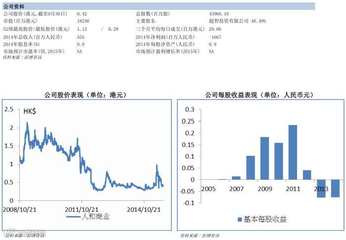 公司业务。2015上半年,公司收入同比下滑11%至2.4亿元人民币(下同),经营租赁收入同比下滑9%至2.4亿元,投资物业评估减值为8.2亿元,公司通过收购,进入了农产品批发市场行业,目前在中国6个城市经营8个农产品批发市场,未来管理层计划运用线下资源,打造成中国最大的农产品电商平台。