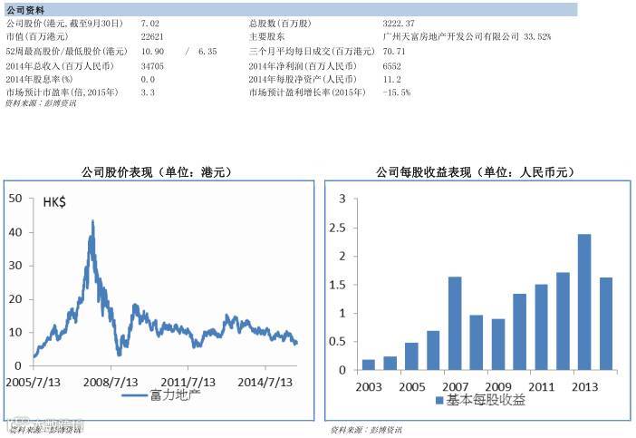 公司简介。公司为中国大型住宅开发商,集房地产设计、开发、工程监理、销售、物业管理、房地产中介等业务为一体,2005年7月在香港交易所主板上市。公司聚焦于中国一二线城市中高端住宅市场,拥有国家建设部颁发的一级开发资质、甲级设计资质、甲级工程监理资质、一级物业管理资质及一级房地产中介资质。目前,公司业务已包括北京及周边、天津、上海及周边、杭州、西安、重庆、海南、太原、沈阳、惠州、南京、成都、哈尔滨、大同、无锡、长沙、梅州、福州、贵阳、南宁、佛山、珠海、包头和马来西亚。公司亦开发、销售和出租商用及办公物业,并拥有7家已投入运营的酒店,包括广州的富力丽思,卡尔顿酒店和富力君悦大酒店,北京的富力万丽酒店和富力快捷假日酒店,惠州富力万丽酒店,重庆富力凯悦酒店,以及成都富力丽思卡尔顿酒店。