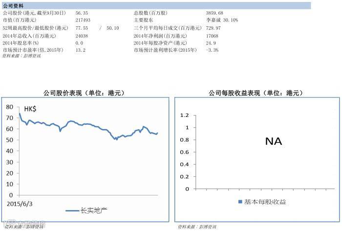 公司业务。 2015年上半年,营业额同比增加24.2%至190.49亿港元,股东应占溢利增长22.3%至68.9亿元。发展物业组合部分源于长实集团之物业项目及部分来自和黄集团之房地产项目,而两集团的合资企业经地产业务合并后成为集团的附属公司,使集团旗下拥有的发展项目大幅增加,进一步提升其于香港及内地核心市场的物业发展商地位。投资物业组合涵盖办公室、零售、工业物业及供长期投资的停车位,经房地产业务合并后新增的高质素项目大部分来自和黄集团多项提供优质租金收入的商业项目如长江集团中心、和记大厦及华人行等,集团投资物业总建筑面积约一百五十万平方米,成为一稳固现金流来源,可为集团提供稳定经常性收益。展望下半年,物业销售收益将主要来自香港维港• 星岸、上海湖畔名邸、北京誉天下第 3 期、南京涟城第 1 期、武汉世纪江尚中心第 1B 期、新加坡新名门及若干其他预期将会完成之项目的住宅单位销售。