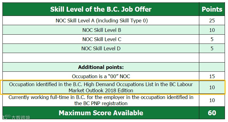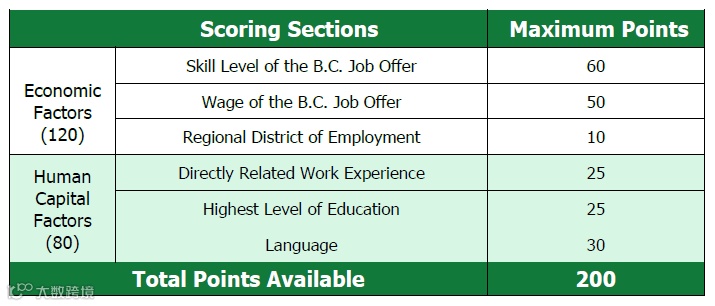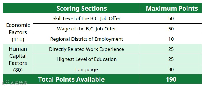 因为少了这项额外加分,BCPNP总体分数也从200分下调至190分。