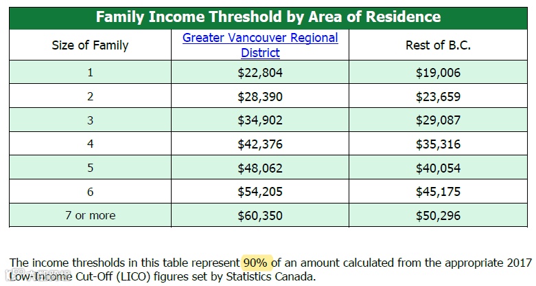 申请人须满足家庭收入最低要求从2019年加拿大统计局设定的“最低收入截止数字 ”(Low Income Cut-off figure)的90%,上调至 100%。