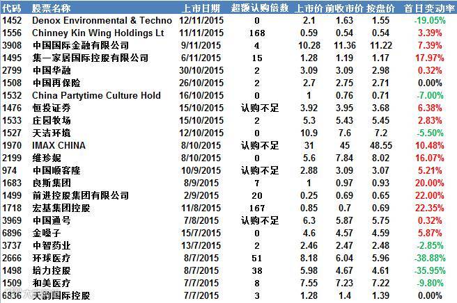 近期上市的半新股首日表现
