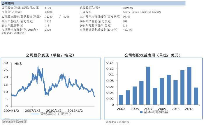 公司业务。2015上半年,由于市场疲软再加上大部分货币兑美元贬值的影响,公司收入仅微升1.2%至10.2亿美元。净利润增长29%至9800万美元。不考虑投资物业公平值收益及酒店物业项目减值亏损,净利润同比增长5%至4100万美元。上半年,酒店业务收入为9.6亿美元,与去年同期基本持平,但税前利润由去年同期的3800万美元变成亏损90万美元。物业租赁业务同比微增9%至4000万美元,而税前利润增长26.4%至7500万美元,是公司最大的利润来源。酒店管理业务的收入和利润分别下滑5%和14%至6700万美元和830万美元。公司未来的经营环境将继续充满挑战,不利因素包括地方货币疲软令许多人对海外旅游的负担能力降低;以美元列示的收入减少,主要市场需求不振等。预期将公司下半年营运业绩会继续面临较大压力。