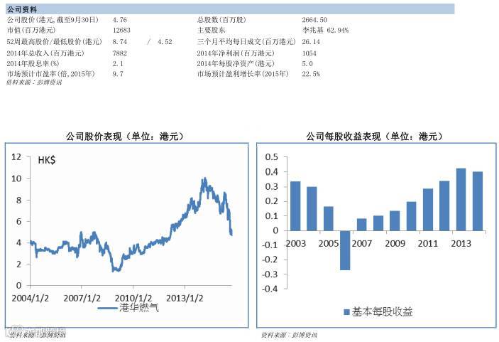 公司业务。集团于截至2015年6月30日止期间录得营业额及公司股本持有人应占溢利150.91亿港元及15.64亿港元,较去年同期的128.46亿港元及12.51亿港元分别增加17.5%及25.0%。城市燃气业务的总收入来自可持续燃气销售及一次性燃气接驳费用,分别占截至2015年6月30日止期间收入的83%及17%。尽管行业环境充满挑战,然而受惠于营运效率持续提升,集团的中国城市燃气分销业务持续为集团提供可观的溢利及现金流入。集团的燃气总销量增加10.9%且接驳用户增加12.5%。集团的外延式收购从2013年的底谷再次回升,当年仅支出8.36亿港元用于此目的。但外延式收购支出于2014年已大幅增加到19.43亿港元。集团于2015年上半年投资3.872亿港元并预计外延式收购于2015年下半年将加速。