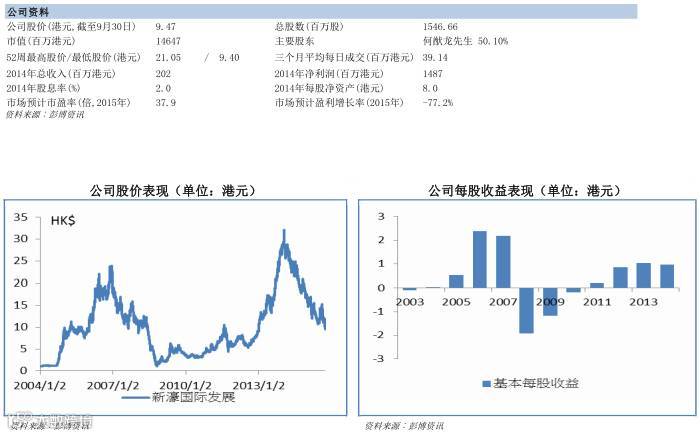 公司简介。新濠国际发展有限公司始创于1910年,具有悠久的历史。公司主要经营休闲、博彩及娱乐业务,核心业务主要包括亚洲博彩业务,东南亚的博彩机业务和亚洲彩票管理业务。公司通过联营公司新濠博亚娱乐(集团拥有33.55%的权益)持有澳门仅有的六个博彩专营权之一,于澳门经营娱乐场业务,目前发展项目有位于凼仔的澳门新濠锋,位于路凼城的澳门新濠天地和摩卡角子娱乐场;公司透过纳斯达克上市的联营公司Entertainment Gaming Asia(集团持有38.14%权益)为亚洲地区的高档酒店及其他娱乐场所提供电子博彩机和系统,在菲律宾和柬埔寨建立了稳固的市场地位;也通过新濠环彩有限公司(集团持有43.93%权益)向中国福利彩票及中国体育彩票提供彩票相关技术、系统及解决方案。2013年,新濠博亚娱乐荣登《福布斯亚洲》亚太最佳上市公司50强。