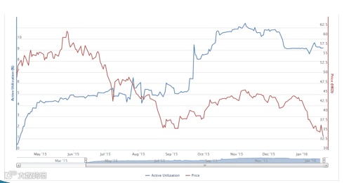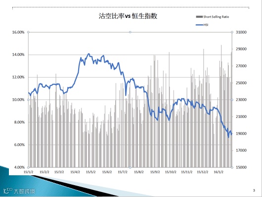 沽空比率与股价间走势的关系(蓝色为沽空比率,红色为股价)沽空比率上升,表示沽空者预期股价有下跌空间