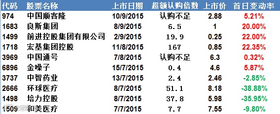 近期上市的半新股首日表现