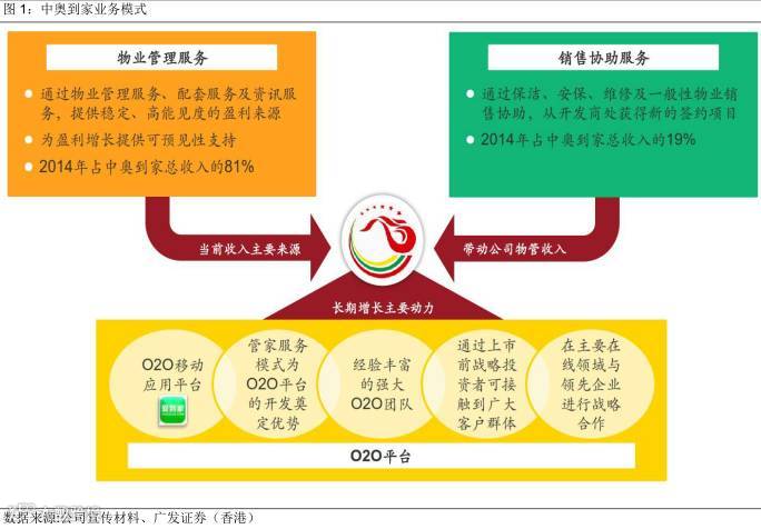 中奥到家是一家国内独立物业管理公司,2014年在“中国物业服务百强企业”中排名第九,在独立物业管理公司中排名第三。截止2014年底,公司在全国11个省的27个城市定约管理149项物业,合约管理建筑面积总计31.4百万平方米,计算收益建筑面积总计12.6百万平方米。 2014年公司总收入为361.2百万人民币,过去三年的年均复合增长率达35.3%;2014年公司净利润为55.9百万人民币,过去三年的年均复合增长率达109.0%。从2012年到2014年,公司的毛利率从19.0%增长值33.4%,净利率从6.5%增长至15.5%。作为公司在众多物业管理公司中最为独特的经营策略之一,公司有超过700名管家为旗下的绝大部分物业提供管家服务,能在通常的物业服务之外提供180多种增值服务。管家服务不仅提升了住户满意度,同时推动了公司财务指标的改善。