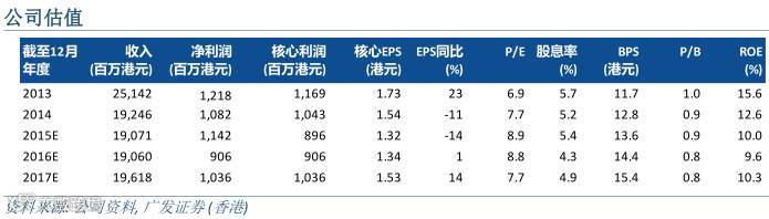 维持“持有”评级,下调目标价至11.90港元。根据我们最近与管理层的电话交流,鉴于公司门店数目少于同业,更能把握门店管理,且具有差异化产品,我们预计周生生4Q15同店销售将继续领先周大福(1929 HK, 减持)和六福(590 HK, 持有)。我们将FY15/16核心净利润预测分别下调9%/16%,以反映人民币贬值带来的汇兑损失以及较低的同店销售假设,目前我们预测FY15核心净利润同比下降14%(1H15为同比下降7%),中国同店销售同比增长6%,而香港及澳门则下滑10%。我们把目标价格从15.40港元下调至11.90港元,对应9倍FY15预测市盈率(先前为10.6倍)。
