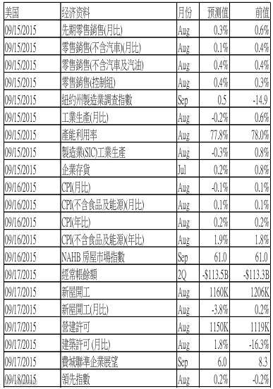 本周大市及板块焦点 美联储将于本周举行FOMC会议,市场已普遍预期美联储可能延后加息,但美联储是次会议声明的取态仍会对金融市场带来重要影响,若声明偏向鹰派,明确地指出今年将会加息的话,美股可能再次受压。另一方面,虽然新兴市场的金融市场暂时稳定下来,但中国股市波动性仍然非常大,加上拉丁美洲股市及汇市亦出现动荡,新兴市场的危机仍可能困扰美股一段时间。