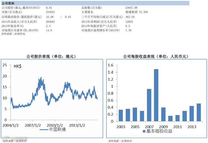 公司简介。 集团是中国内地第二大的移动通信服务供应商。主要在中国大陆的31省、直辖市及自治区提供GSM (2G)与WCDMA(3G)移动通信服务。集团固网业务覆盖辽宁、吉林、黑龙江、山东、山西、内蒙古、河南及河北省及天津市和北京市。 2014年底,集团拥有3.0亿移动通信用户。集团于2000年在纽约和香港上市。