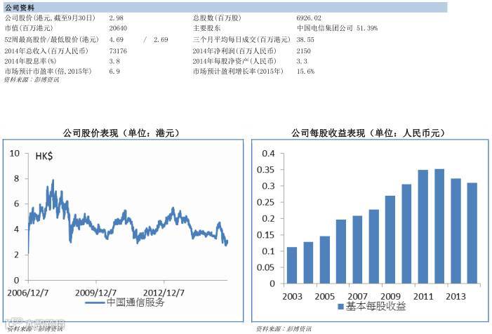 公司业务。 受流动通讯硬件收入增加所带动,综合营业额上升77%至110.20亿港元。 股东应占溢利上升57%至5.08亿港元。流动通讯业务于2015年上半年的营业额为92.42亿港元,同比增长108%。2015年上半年的流动通讯硬件(主要为智能手机)的收入较2014年同期增长242%至71.50亿港元。2015年上半年的流动通讯客户服务净收入为20.92亿港元,同比下降11%。于 2015年6月30日 ,集 团在香 港 及 澳 门 的 总客 户 人 数约为290万名,较2014年底减少9%,2015年上半年的综合本地后缴净ARPU(每户平均收入)为158港元,同比增长20%。固网业务于2015年上半年的收入为19.84亿港元,与2014上半年相若。