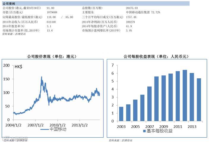 公司简介。 集团是中国内地最大的移动通信服务供应商,拥有全球最多的移动用户和全球最大规模的移动通信网络。 截2014年底,中国移动拥有8.07亿用户,占中国移动通信市场65%以上的市场份额。通过子公司在中国内地31个省(自治区、直辖市)以及香港提供移动通信服务。集团营运收入主要来自移动通信网络产生的通话费、月租费;增值业务收入由话音增值业务、短信业务及非短信数据业务产生;以及其他营运收入多由网间互联收入而来。集团于1997年在香港交易所上市,现为恒生指数成份股。