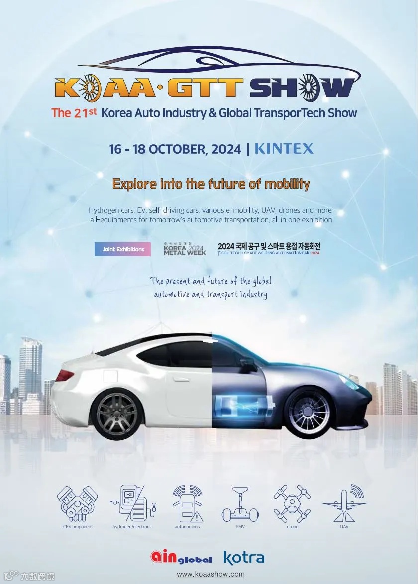 KOAA GTT SHOW是韩国历史最悠久、最大的汽车行业专业展会,拥有韩国最多的专业参展商,并获得韩国中央政府的大力支持,被评选为“有前景的展会”。参展商来自整车厂、汽车零部件和配件T1/T2制造商、汽车后市场零配件分销商、运输行业等。