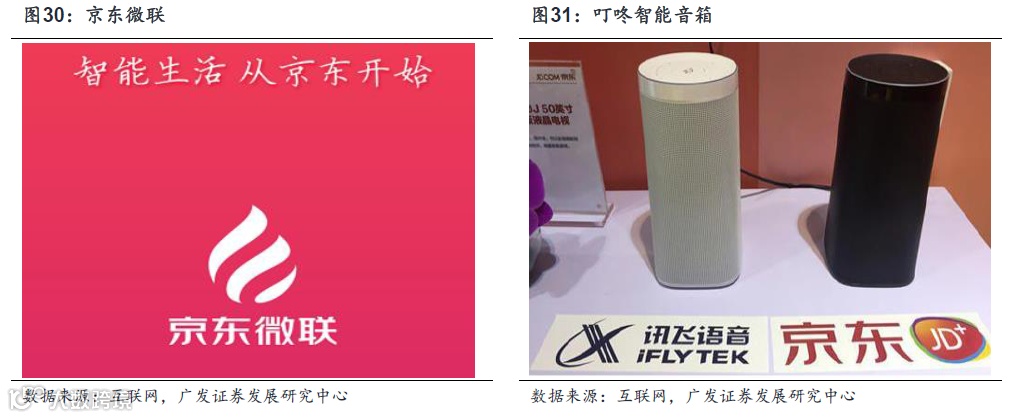 京东还推出了智能家居平台——京东微联,一方面用户通过微联App来对各种品牌的智能产品进行远程控制,以此来实现不同产品之间的联动,另一方面京东微联能够收集个人健康、运动、睡眠等方面的信息,进而提供个性服务。在2015年5月的亚洲消费电子展上,京东展出其与科大讯飞合作的叮咚智能音箱,以及与长虹合作 “流云”移动电源。