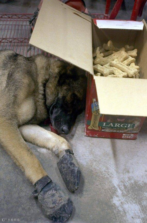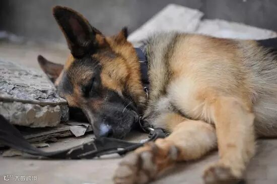 因连续工作累倒了的搜救犬们