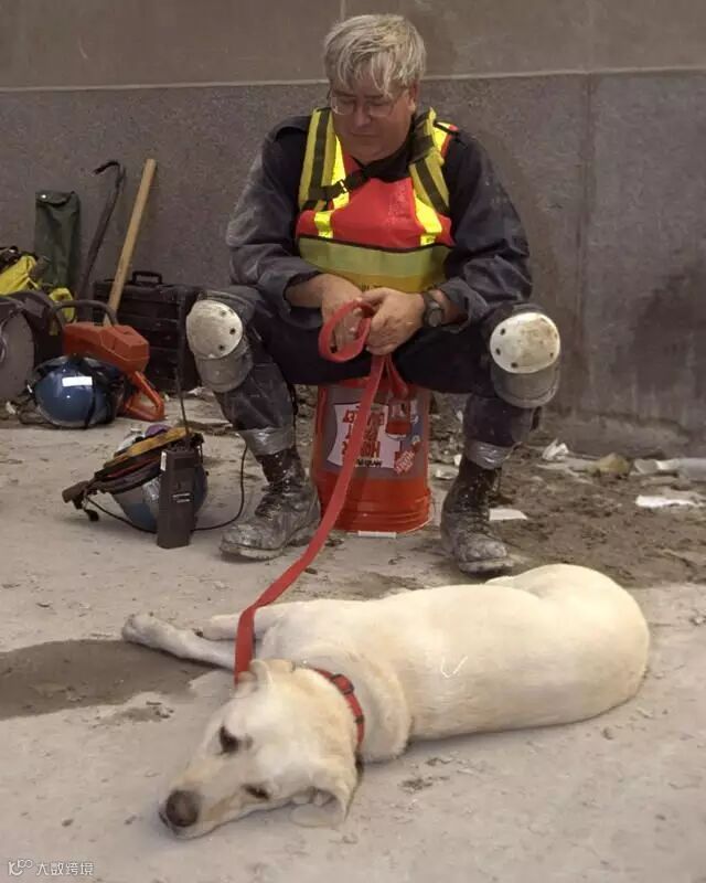 找到罹难者后救难人员亲吻搜救犬