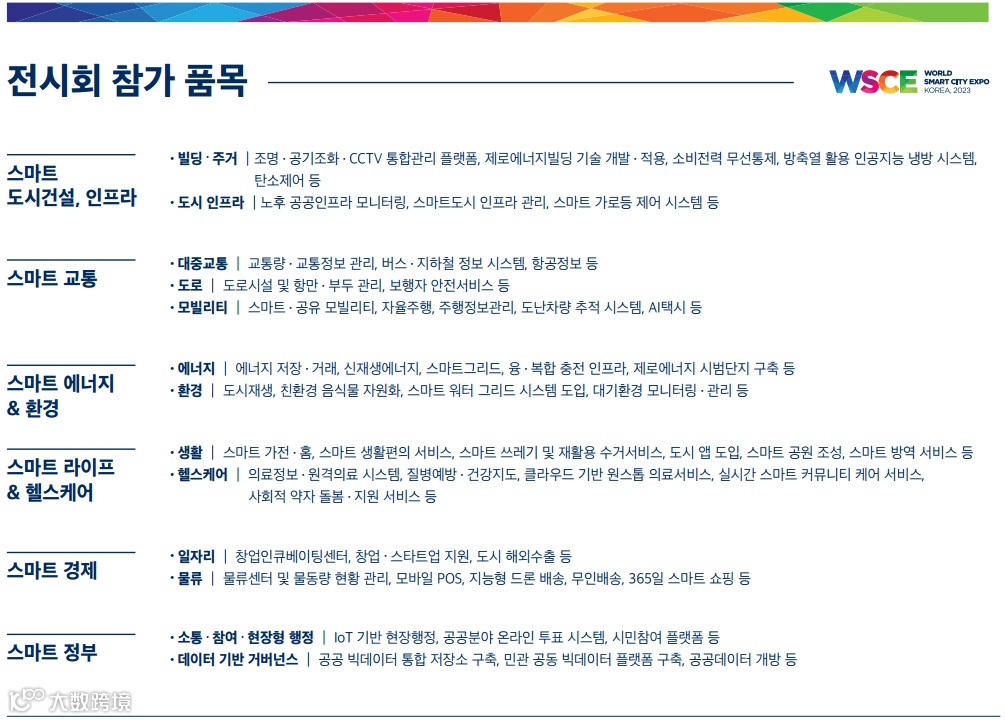 此次,我们将于2023年09月举办“韩国2023世界智慧城市出口洽谈会”。为韩国与中国发展智慧城市的企业提供一个拓展事业的舞台。