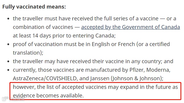 虽说目前加拿大卫生部只公布了四款认可疫苗(辉瑞、莫德纳、阿斯利康和强生),但是,政府在公告中也明确的指出: